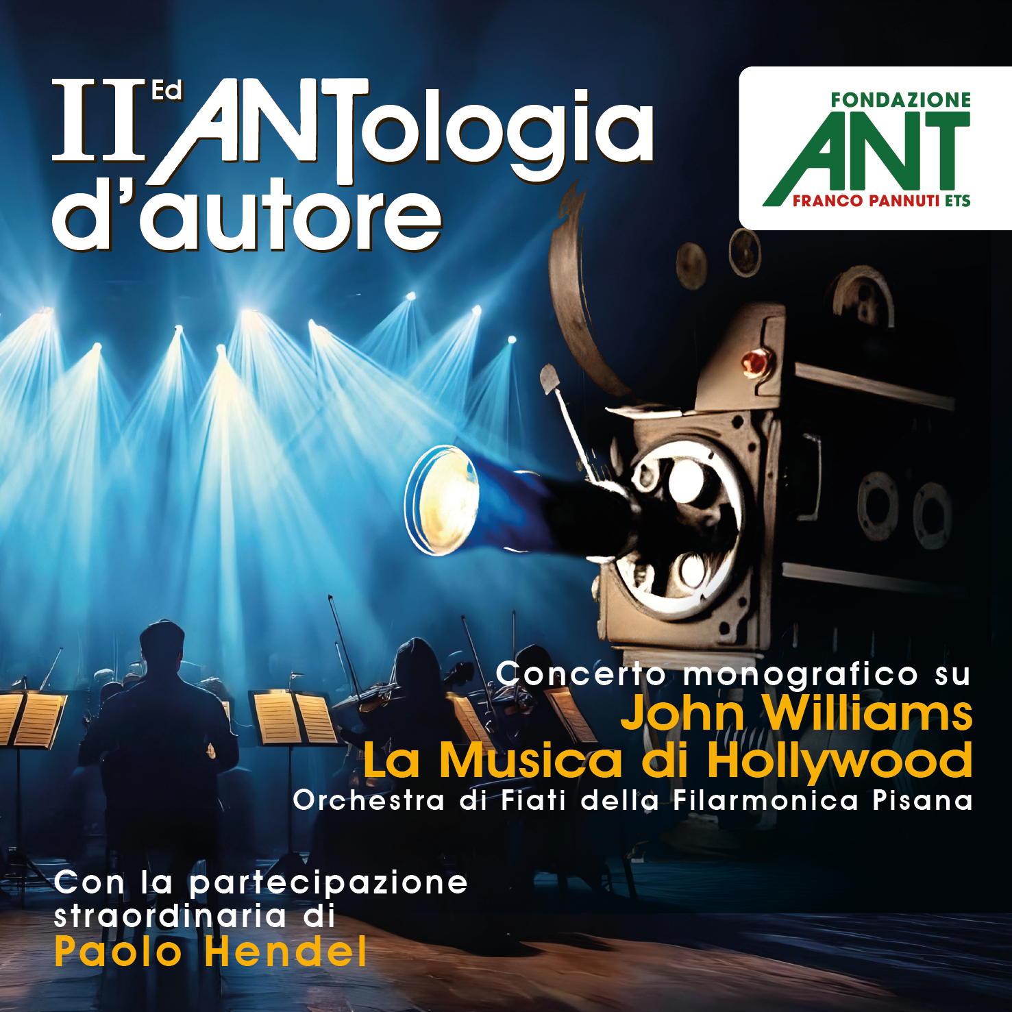 La seconda edizione di ANTologia d’autore di Fondazione ANT ha come tema la musica del grande cinema con il titolo John Williams La Musica di Hollywood e vede la nostra Orchestra di Fiati sotto la guida del Maestro Paolo Carosi con la regia di Stefano Bini e la conduzione è affidata alla giornalista Francesca Franceschi e a Renato Raimo attore e Direttore Artistico di Fondazione Arpa.